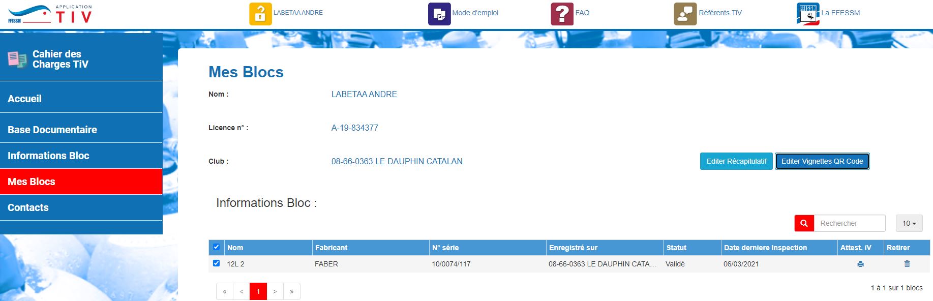5. Cliquer sur l'icone "Attest. IV" pour obtenir l'attestation complète, ou sur le bouton "Editer vignettes QR Code" pour obtenir simplement le QR Code