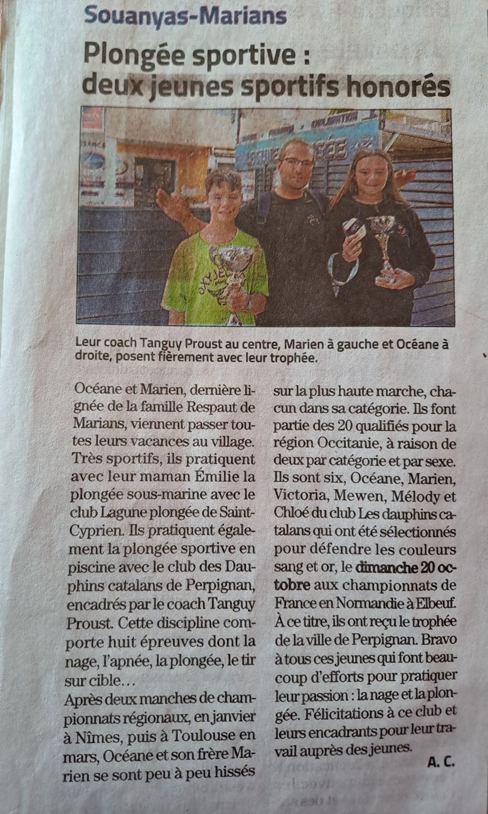 Encore une belle plongée pour quelques jeunes de la section. Bravo à eux et merci aux parents.