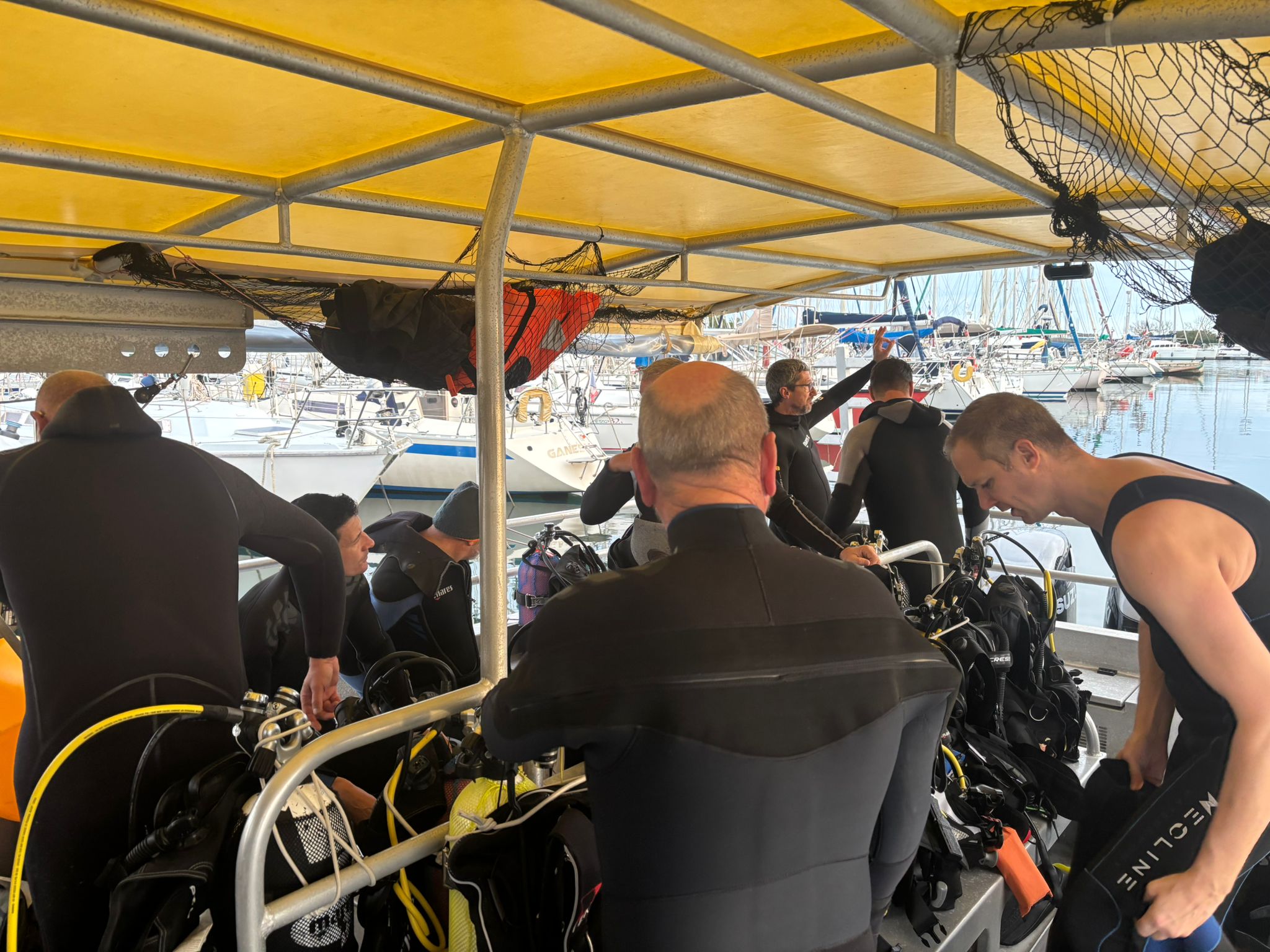 Après un peu de navigation pour nous retrouver au Sec Valenti, Rodolphe nous a fait un briefing complet du site pour nous permettre de plonger au mieux selon les prérogatives.